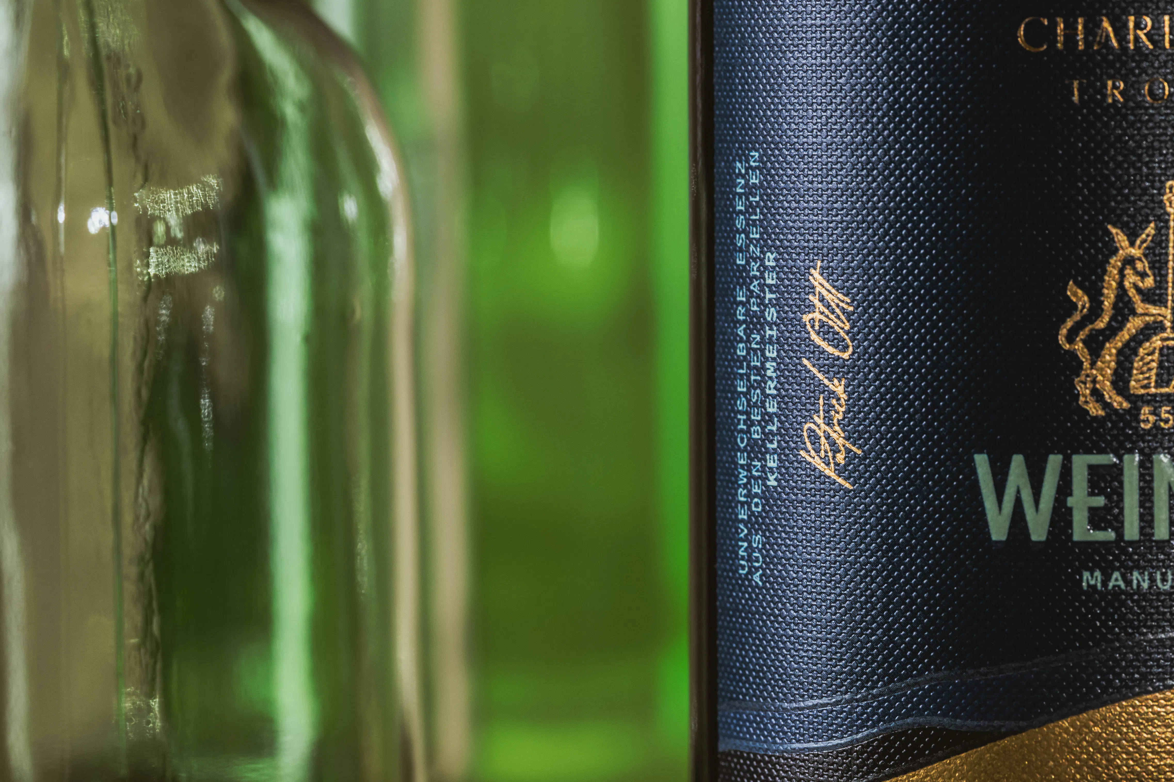 Die geschwungene Linie verleiht der Serie eine eigene Silhouette. Sie schafft Zusammenhalt innerhalb der Range und sorgt gleichzeitig für Dynamik im Regalbild. Charakter entsteht über die Sortenschrift. Jede Rebsorte erhält eine eigene Haltung, ohne das Gesamtbild zu stören. So wird Differenzierung möglich, ohne Beliebigkeit zu erzeugen. Farbe und Struktur führen den Blick. Das Sortiment wirkt geordnet. Wertig. Klar positioniert.